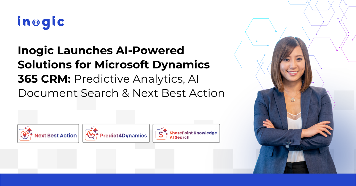 NY, UNITED STATES, April 23, 2026 /EINPresswire.com/ — Inogic, a Microsoft Gold ISV Partner specializing in Microsoft Dynamics 365 and Azure AI, today announced the launch of three AI-powered solutions designed to enhance decision-making within Dynamics 365 CRM: Predict4Dynamics, SharePoint Knowledge AI Search, and Next Best Action.
